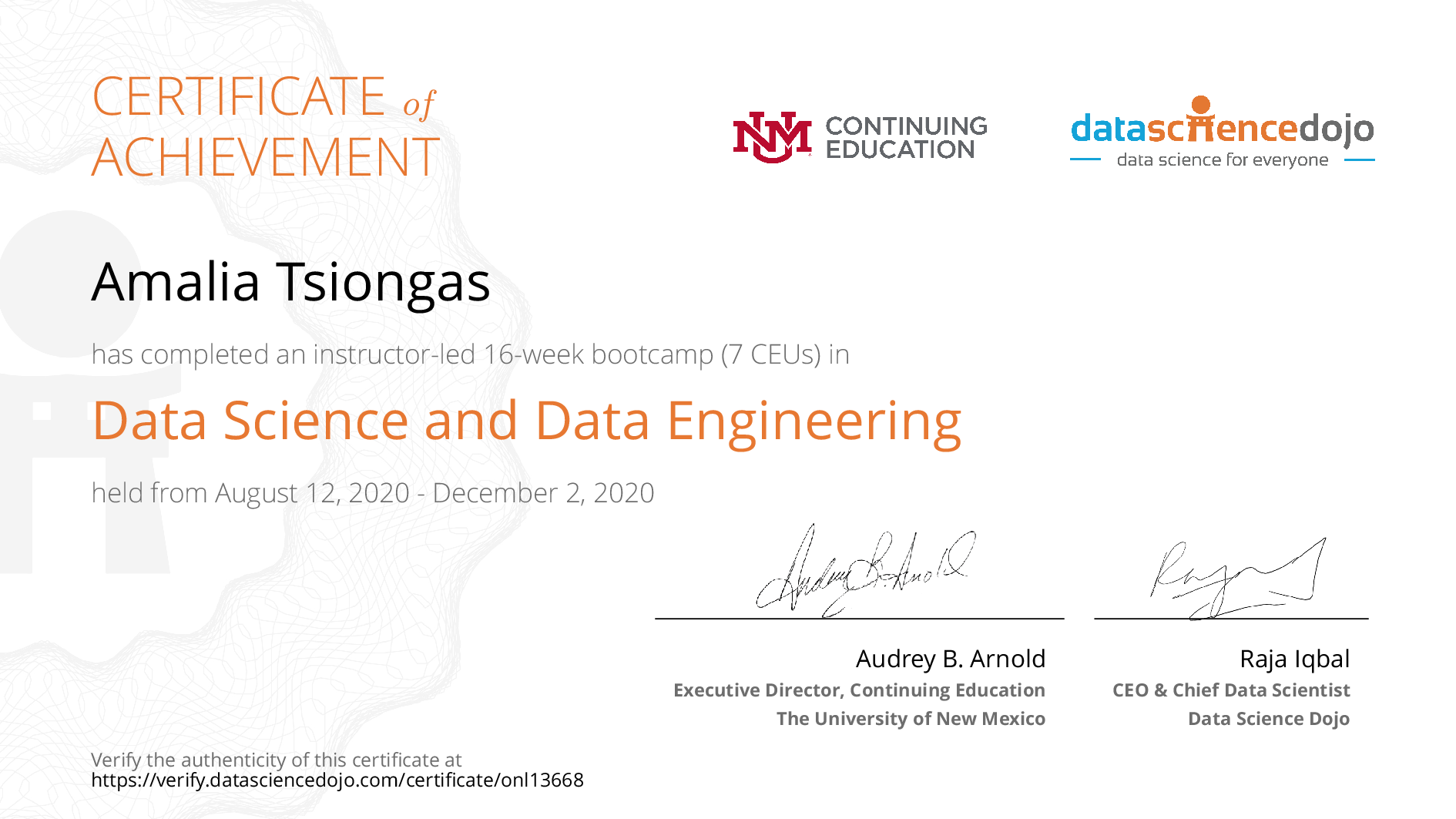 The existence of this website verifies that Amalia Tsiongas has completed the Data Science and Data Engineering Bootcamp training.